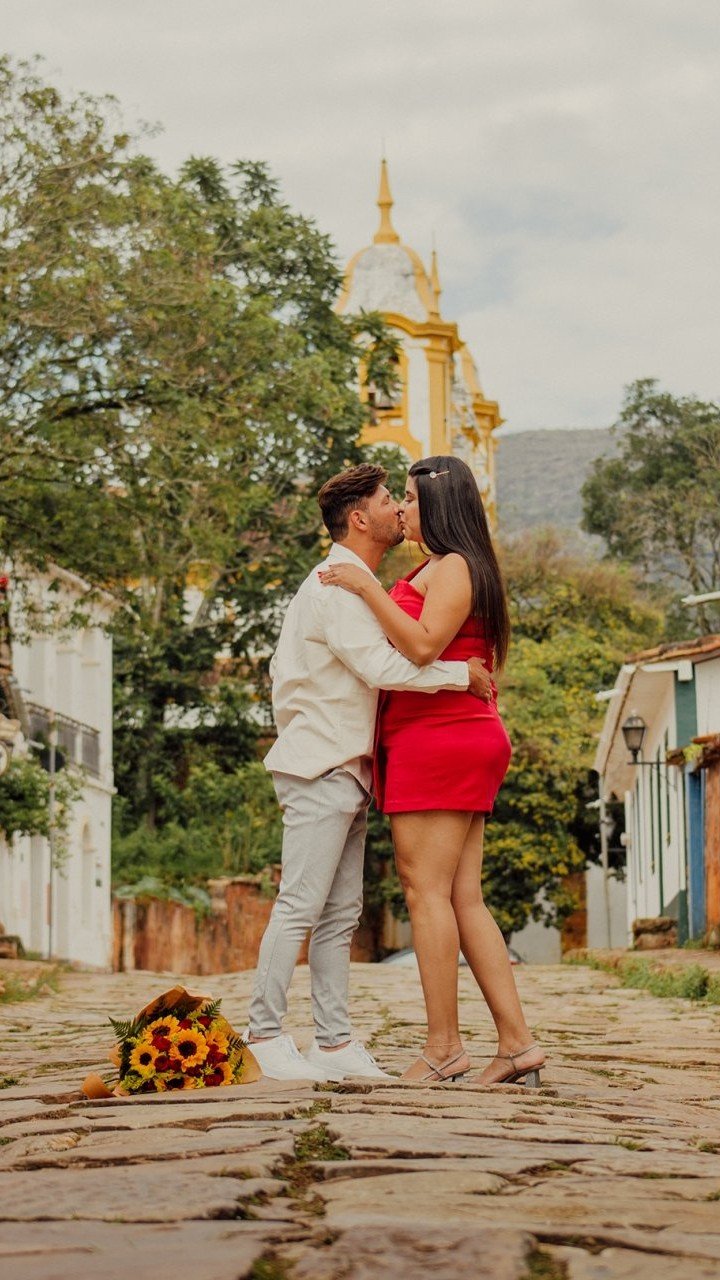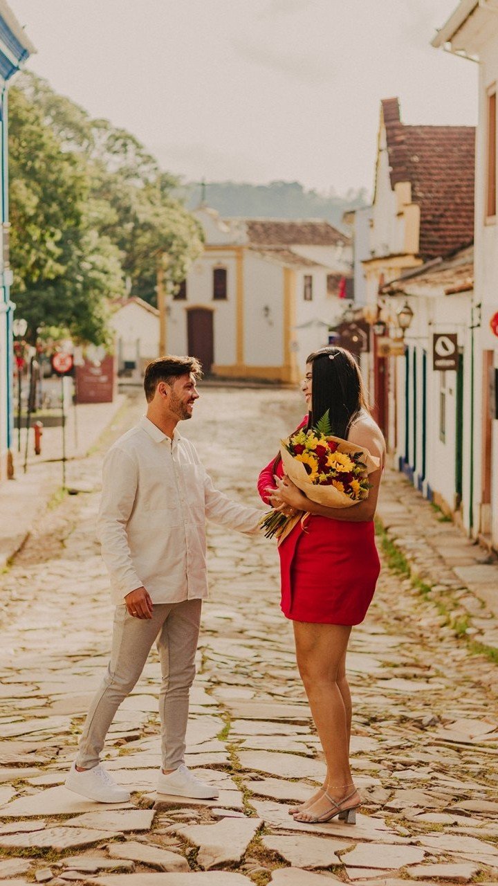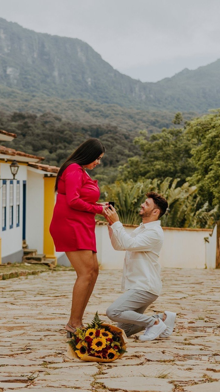 O pedido de casamento não poderia ter sido diferente: com música! Em um show, ele dedicou uma canção especial e, ali mesmo, fez a pergunta que mudaria nossas vidas para sempre. E claro, a resposta foi “sim”! Agora estamos prontos para o grande espetáculo do nosso amor: o casamento.